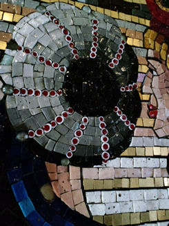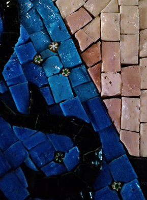 陰影も模様も背景もとても凝っていて美しいモザイク画です、一体何色のガラスが使われているのか・・・