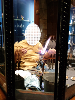 この近くのガラス工芸品を扱っているお店では、おじさんがバーナーワークの実演をしておられました。