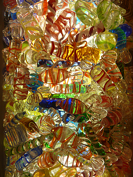 小樽のヴェネツィアガラス美術館でみたような、いろとりどりの美しいガラス片を並べて制作されたモザイク画です。