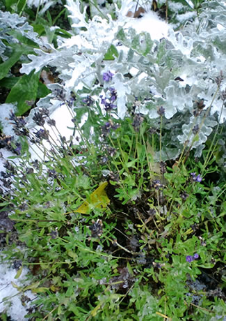 ラベンダー(もう数輪しか咲いていませんが)と雪です。