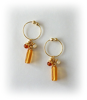 上の作品と同じ金具の色違いです、こちらはトパーズ系のビーズで制作しました。