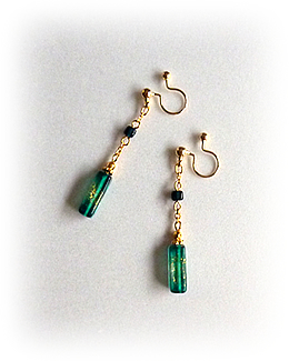 こちらは長めのチェーンに濃い透明の常盤色のプチビーズをつけました。