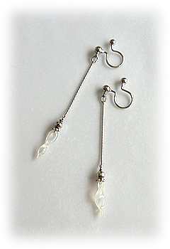 こちらは、ワイヤービーズの応用で制作しました、半透明に見えるように引き伸ばしたガラスを、更にひねって動きを出しました、動くたびにキラキラとします。