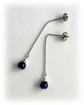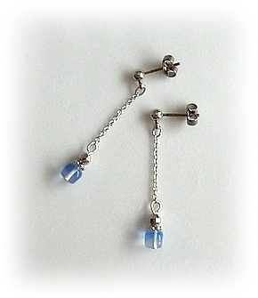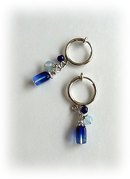 昨年から制作しています、リング状のイヤリング金具に数粒つけるタイプの、青系バージョンです。