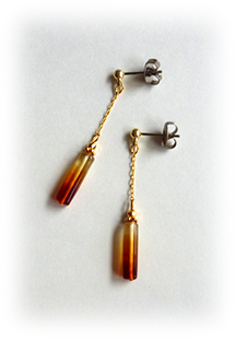 トパーズ系のガラスのピアスは、アメジスト系のガラスのノンホールピアスより若干大きめです、一番上は透明ではなく、薄いトパーズ色です。