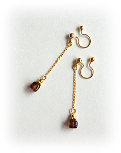 金箔ラメのガラスを巻きつけたキューブビーズのノンホールピアスです。