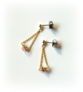 上の作品2点とは違い、ビーズになっており、Tピンを使用しています、こちらも、以前のしずく型ピアスやノンホールピアスのものより大きめなため、存在感があります。