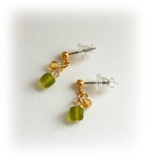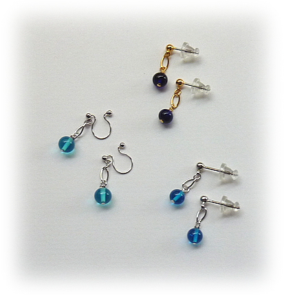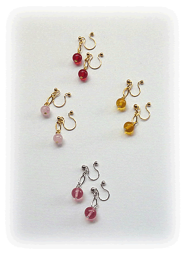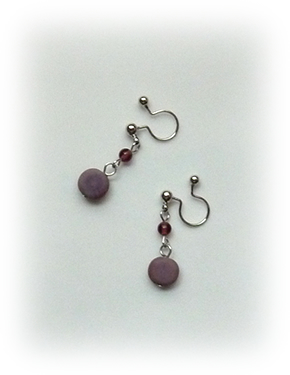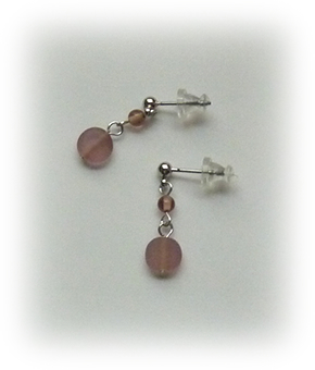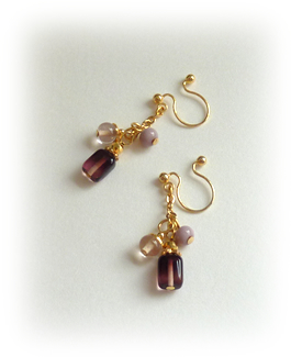 薄紫系のビーズでピアスとノンホールピアスを制作しました。