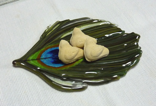 先日制作したクジャクの羽に、干菓子をのせてみました。