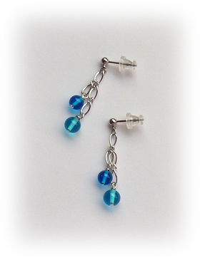 2種類のトンボビーズをさくらんぼのようにふたつ、デザインチェーンに繋げました。