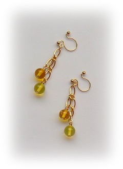 黄色のノンホールピアスは、トパーズ系の色味ではなく、レモンイエローとオレンジ系です。