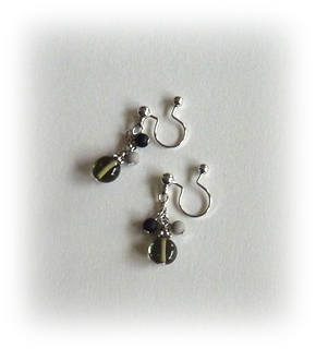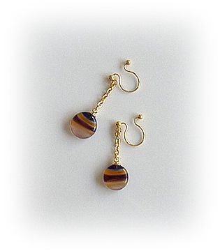 上のロングネックレスに合わせて、ノンホールピアスも制作しました。