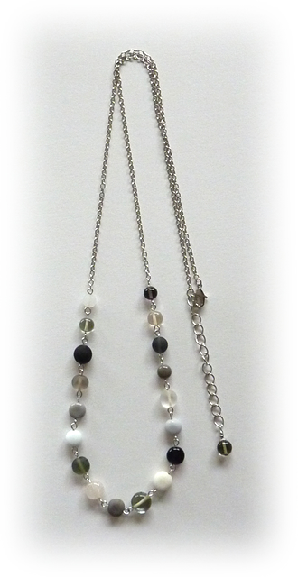 平たい丸いビーズを並べて、ロングネックレスにしました、長さは約60cmです。