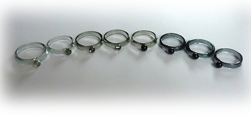 個人的には、一番濃いグレーが好きです、が、主張しない薄いグレーが、他の透明やすりガラスリングなどと合わせて重ねづけした時に良いと思いました。