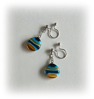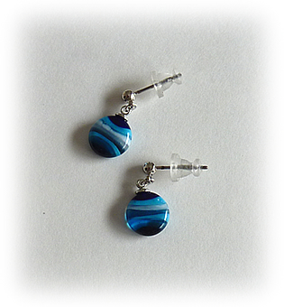 ガラス部分の大きさは直径が1cmくらいです、モチーフが大きめなので、ピアスにはチェーンをつけず、ノンホールピアスにはわずかにチェーンをつけてシンプルに仕上げました。