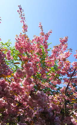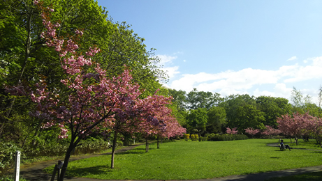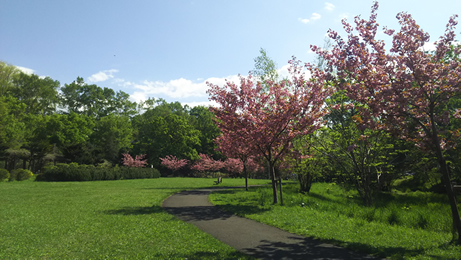 そして、野草の咲く細い道を抜けると、八重桜の植えられている公園に着きます(^▽^)